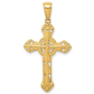 14K Stick Cross on Ornate Cross Pendant