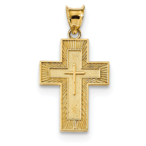 14k Textured Reversible Lord\'s Prayer in Spanish Cross Pendant