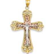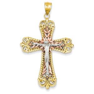 14k Tri-color Crucifix Cross Pendant