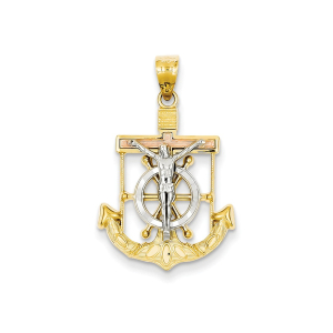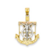 14k Tri-color Diamond-cut w/Textured Mariner\'s Cross Pendant