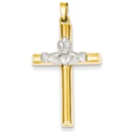 14k Two-tone Claddagh Cross Pendant