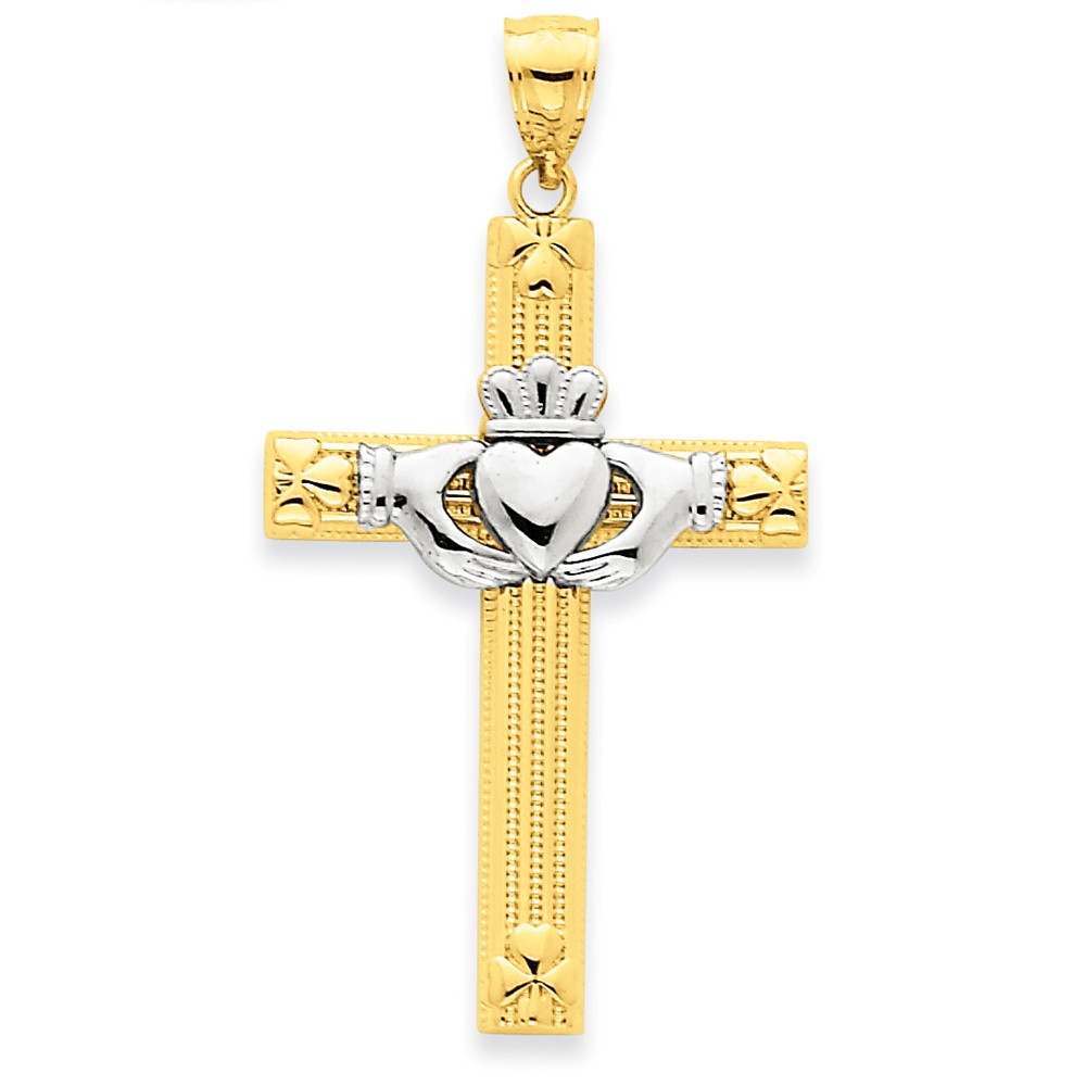 14k Two-tone Claddagh Cross Pendant
