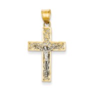 14K Two-tone D/C Small Block Filigree Cross w/Crucifix Pendant