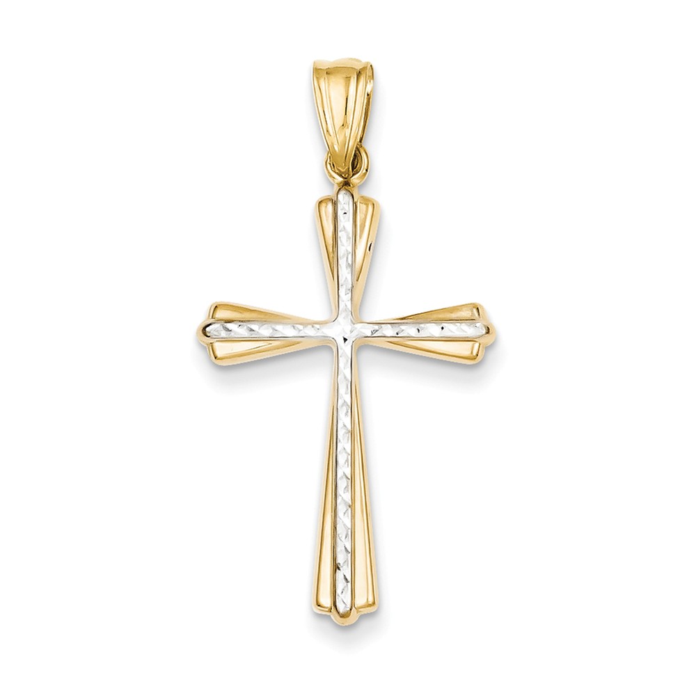 14k Two-tone Diamond Cut Cross Pendant