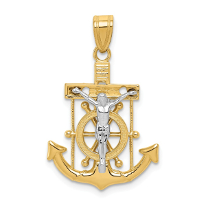 14k Two-tone Diamond-cut Mariner\'s Cross Pendant