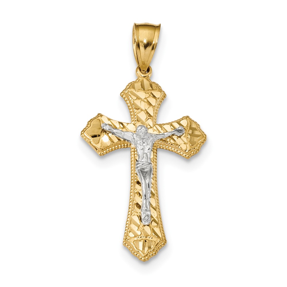 14k Two-tone Diamond-cut Passion Crucifix Pendant