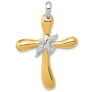 14k Two-tone Dove Cross Pendant