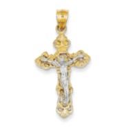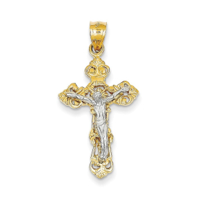 14k Two-tone Fleur De Lis Crucifix Pendant