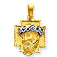 14K Two Tone Gold Christ Head and Cross with Diamond Cut Edge
