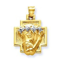 14K Two Tone Gold Christ Head and Cross with Polished Border