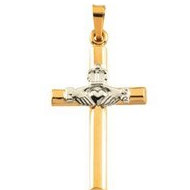 14K TWO TONE GOLD CLADDAGH CROSS PENDANT