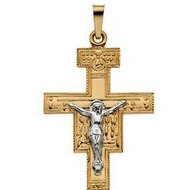 14K TWO TONE GOLD SAN DAMIANO CROSS PENDANT