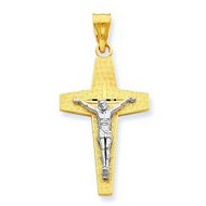 14K Two-Tone Gold Textured Cross Crucifix Pendant