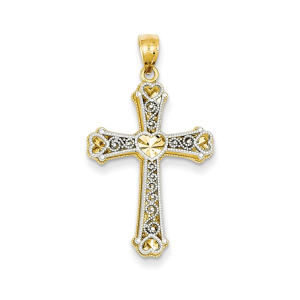 14k Two-tone Hearts Cross Pendant