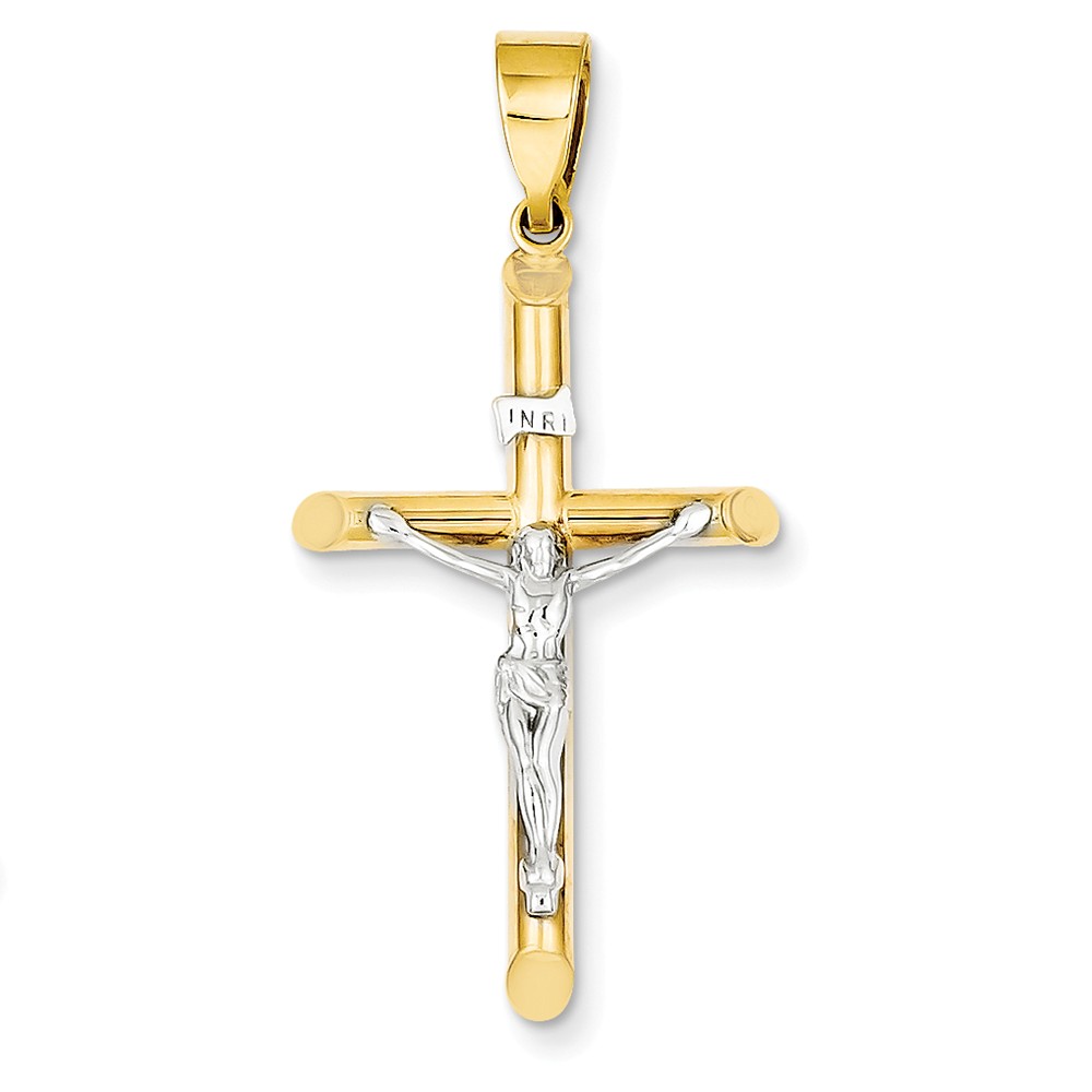 14k Two-tone Hollow Crucifix Pendant