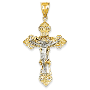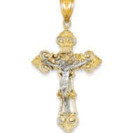 14k Two-tone INRI Fleur De Lis Crucifix Pendant