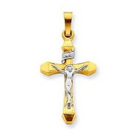 14k Two-tone INRI Hollow Crucifix Pendant