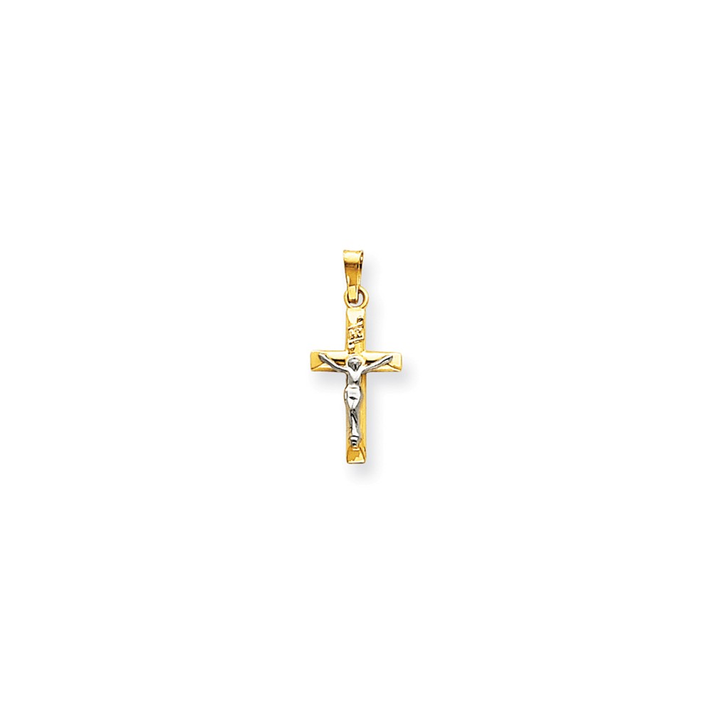 14k Two-tone INRI Hollow Crucifix Pendant
