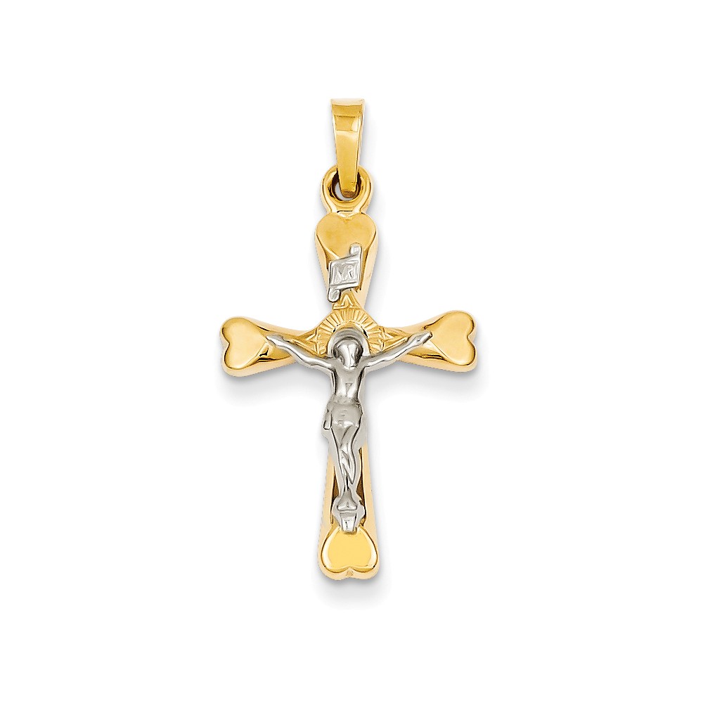14k Two-tone INRI Hollow Crucifix Pendant