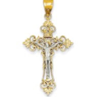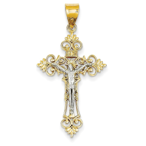 14K Two-tone Large Lacey-edged INRI Crucifix Pendant