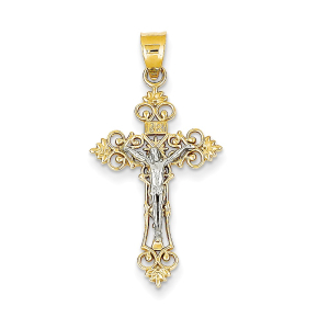 14K Two-tone Medium Lacey-edged INRI Crucifix Pendant