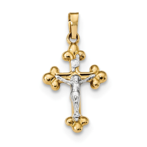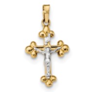14k Two-tone Polished Budded INRI Crucifix Pendant