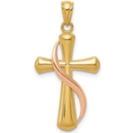 14k Two-tone Polished Cross Pendant