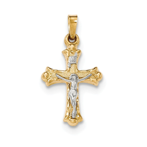 14k Two-Tone Polished INRI Crucifix Cross Pendant