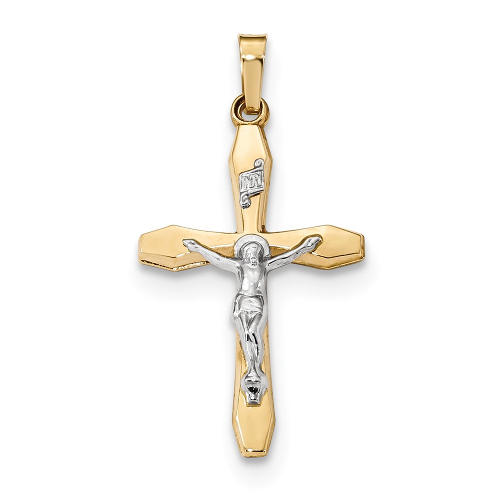 14k Two-tone Polished INRI Crucifix Pendant