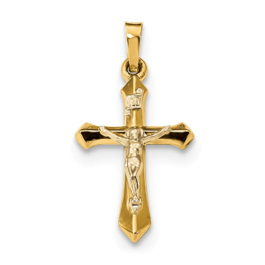 14k Two-tone Polished INRI Crucifix Pendant