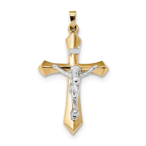 14k Two-tone Polished INRI Crucifix Pendant