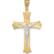 14k Two-Tone Polished Satin D/C Crucifix Cross Pendant