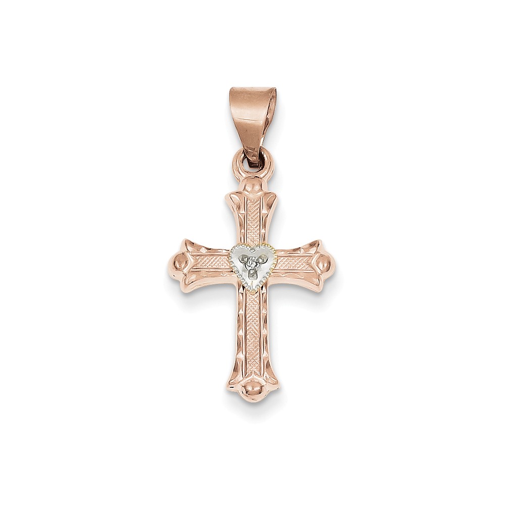 14k Two-tone Rose & White Gold Diamond Cross Pendant