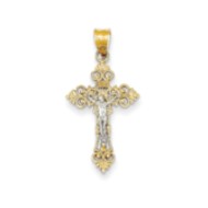 14K Two-tone Small Lacey-edged INRI Crucifix Pendant