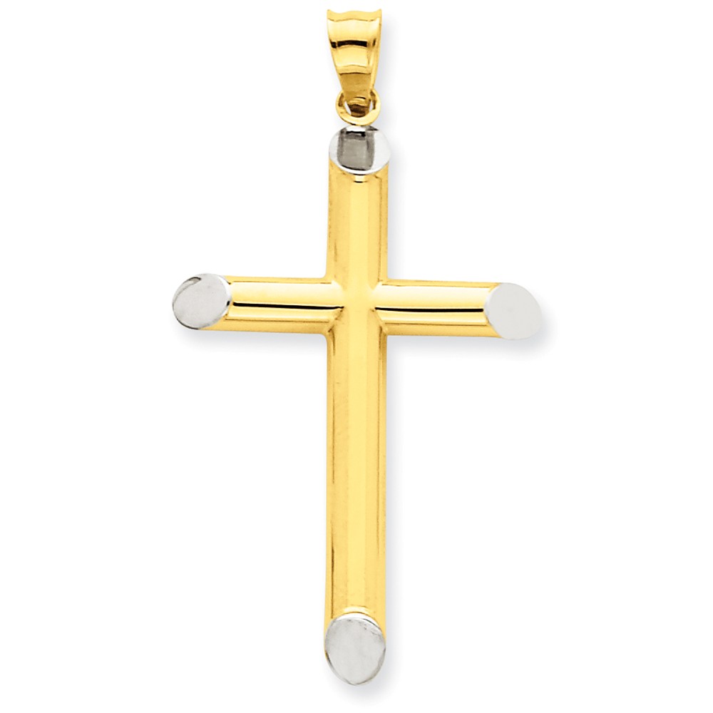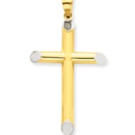 14k w/Rhodium 3-D Hollow Cross Pendant