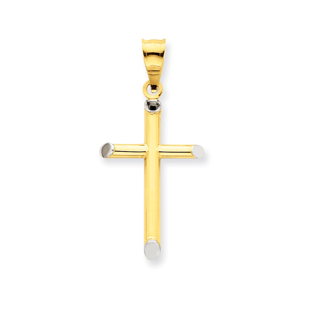 14k w/Rhodium 3-D Hollow Cross Pendant