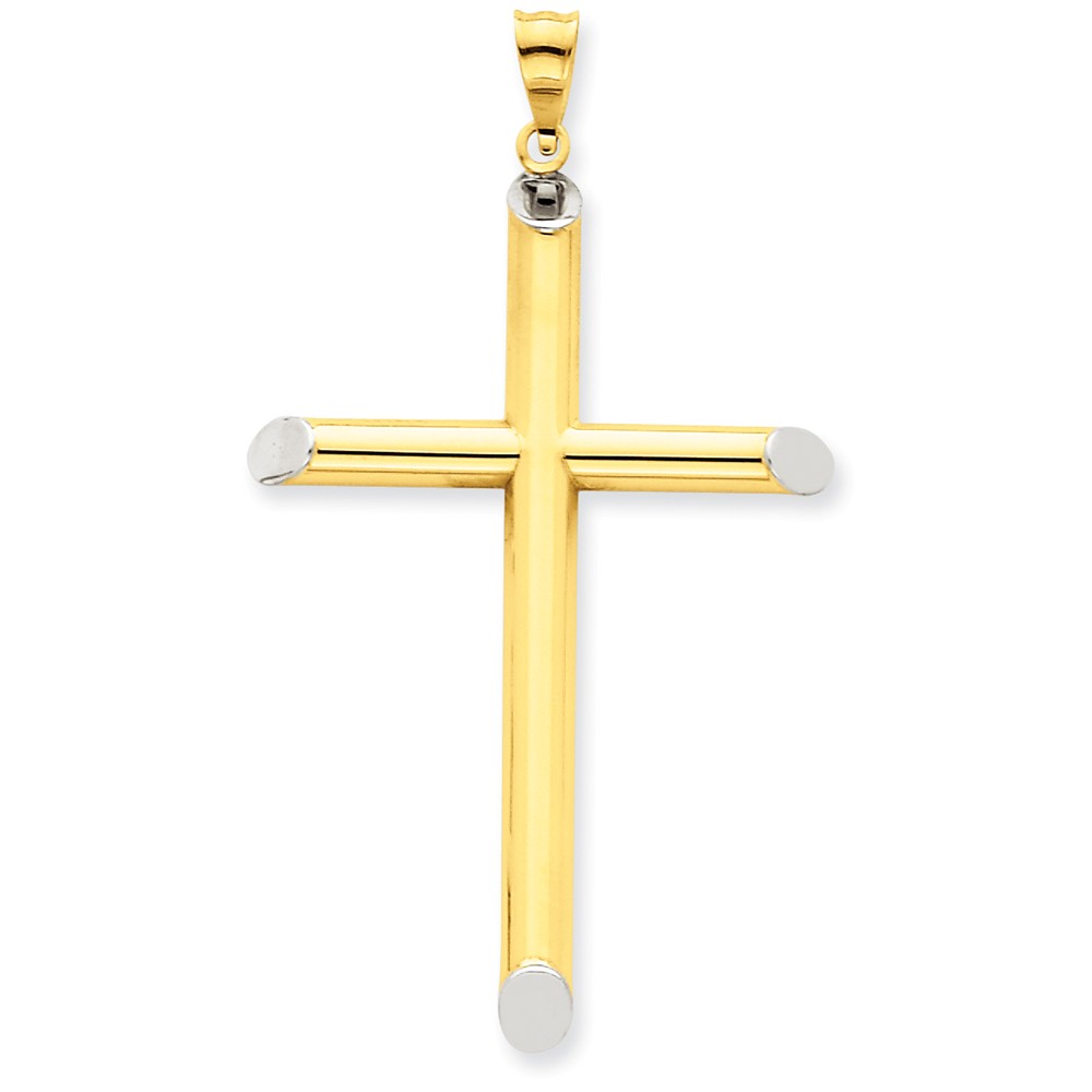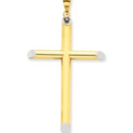 14k w/Rhodium 3-D Hollow Cross Pendant
