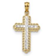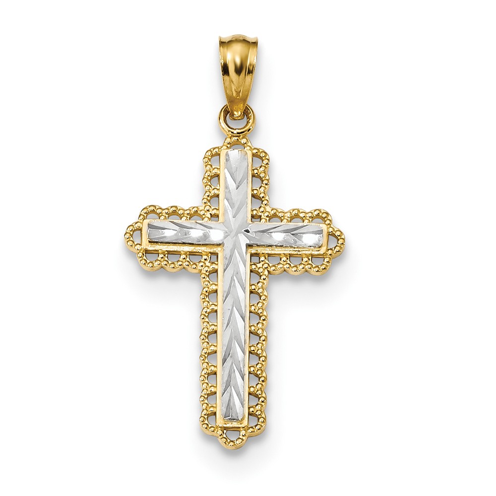 14k w/Rhodium Diamond-cut Budded Cross Pendant