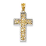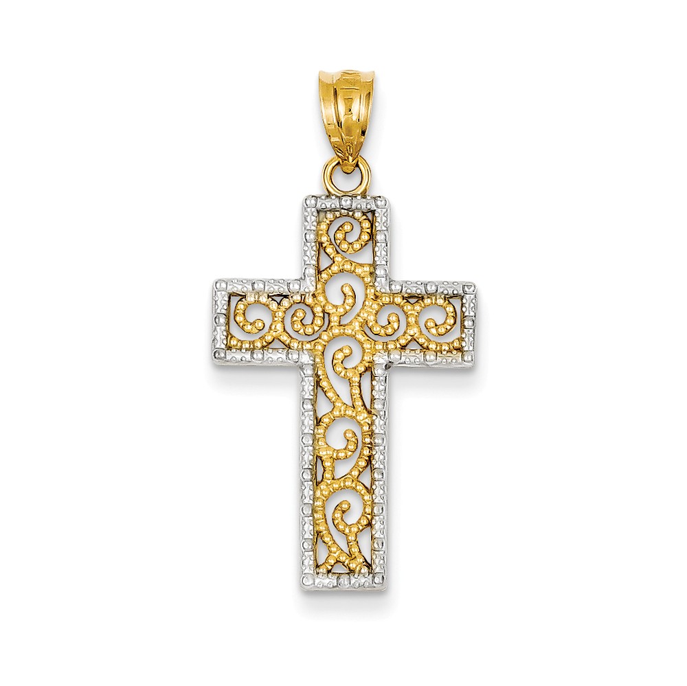 14k w/Rhodium Filigree Cross Pendant
