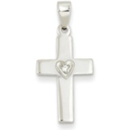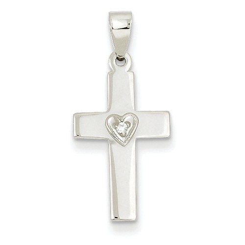 14k White Gold .01ct Diamond Heart Cross Pendant