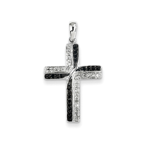 14K White Gold Black & White Diamond Cross Pendant
