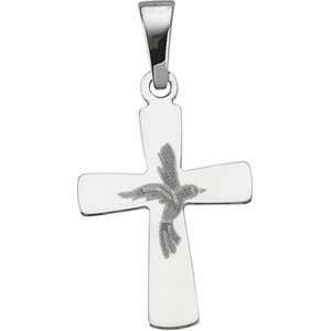 14K White Gold CROSS PENDANT W/ HOLY SPIRIT DESIGN