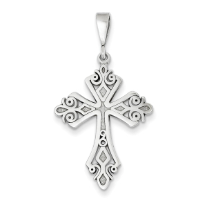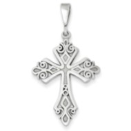14k White Gold Fleur De Lis Cross Pendant