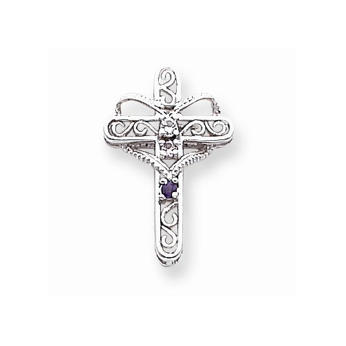 14k White Gold Genuine Mother\'s Cross Pendant