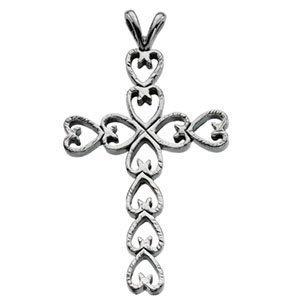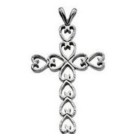 14K White Gold Heart CROSS PENDANT