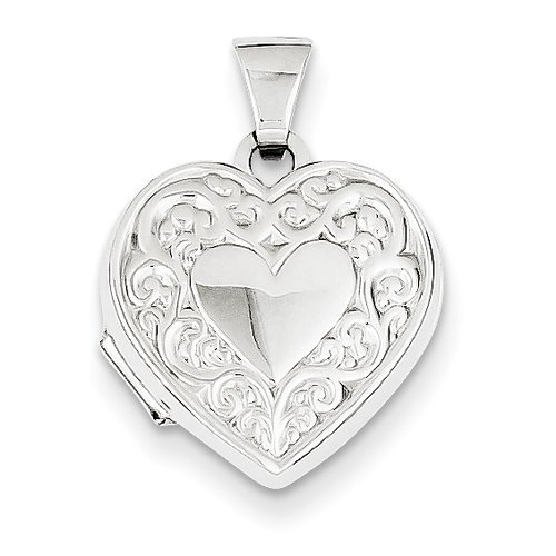 14k White Gold Floral Heart Photo Locket