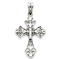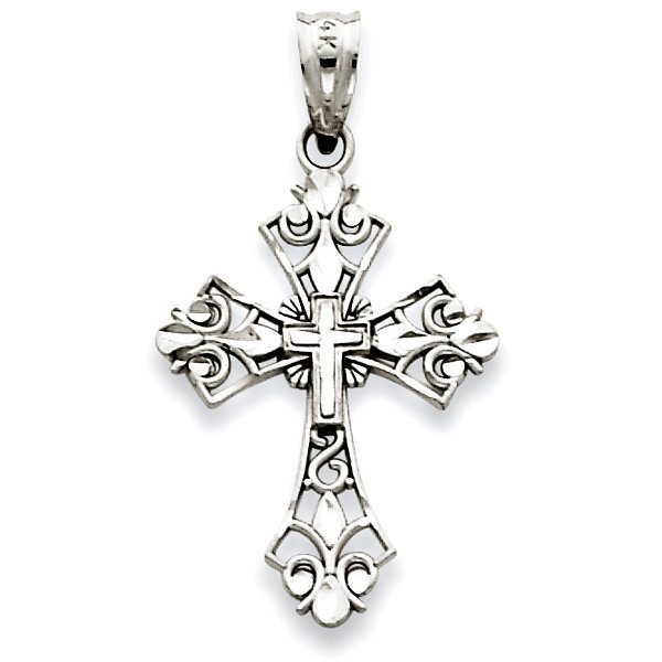 14k White Gold Filigree Cross Charm