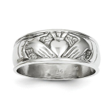 This ring is a 14k White Gold Polished Claddagh Ring and weighs 3.42 grams.