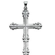 14K White Gold LARGE FANCY CROSS PENDANT