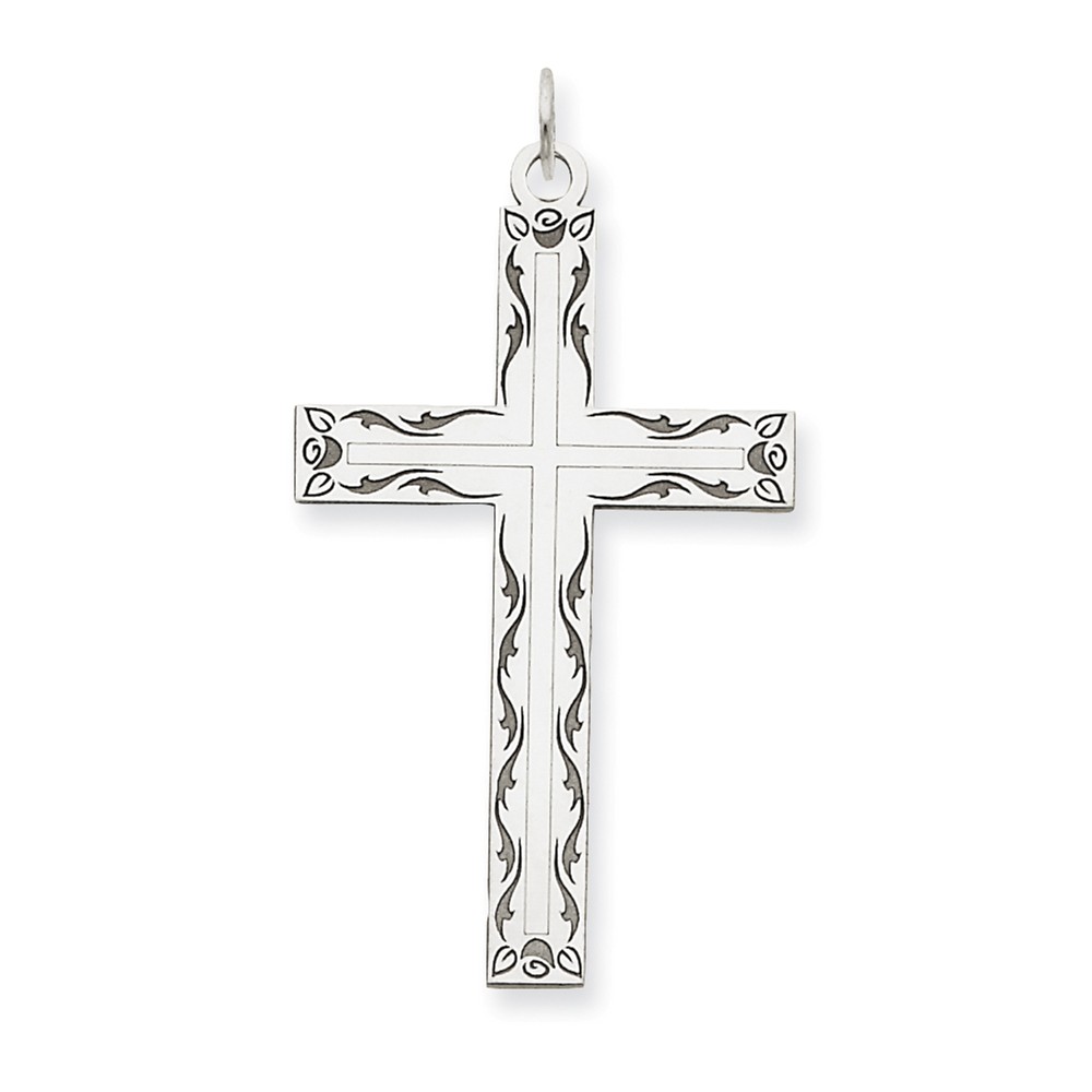 14K White Gold Laser Designed Cross Pendant